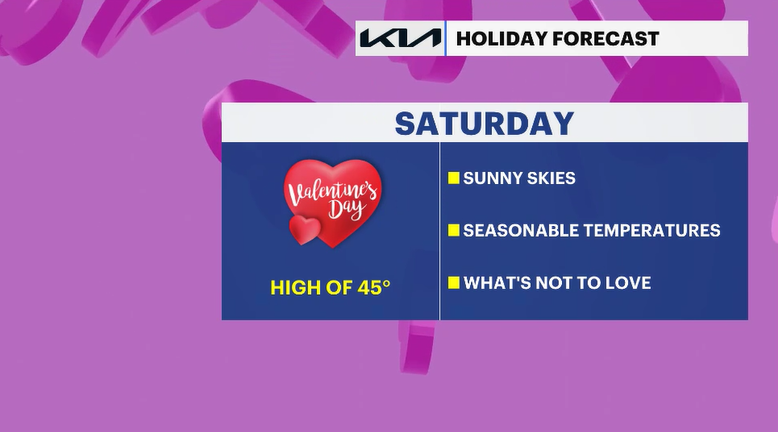 Valentine's Day is wonderful. Mainly sunny skies and seasonable temperatures for anyone running around looking for last minute gifts for loved ones.
