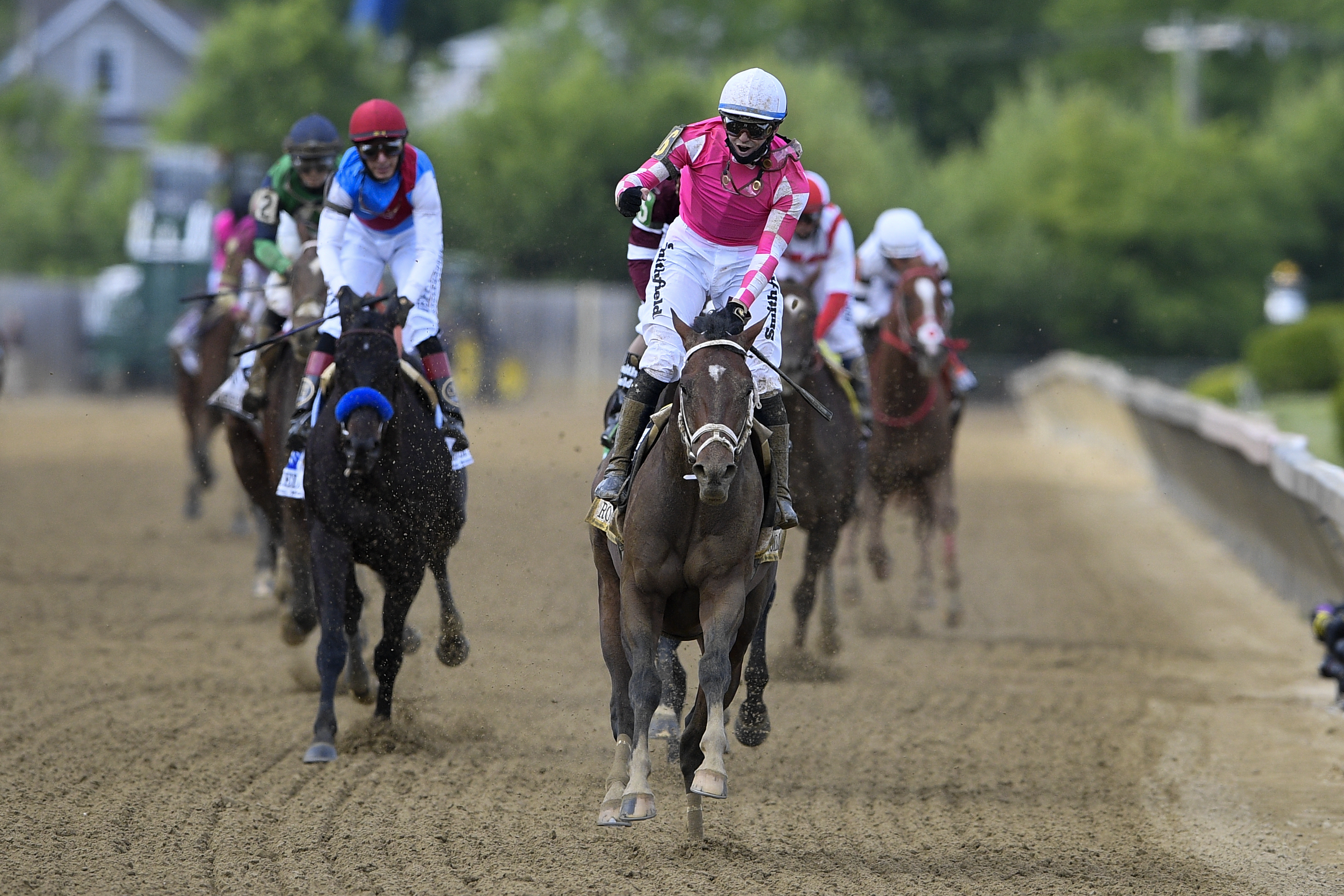 Rombauer busted the bias of horses hugging the rail, going past Midnight Bourbon and Medina Spirit down the stretch and winning by 3 1/2 lengths.