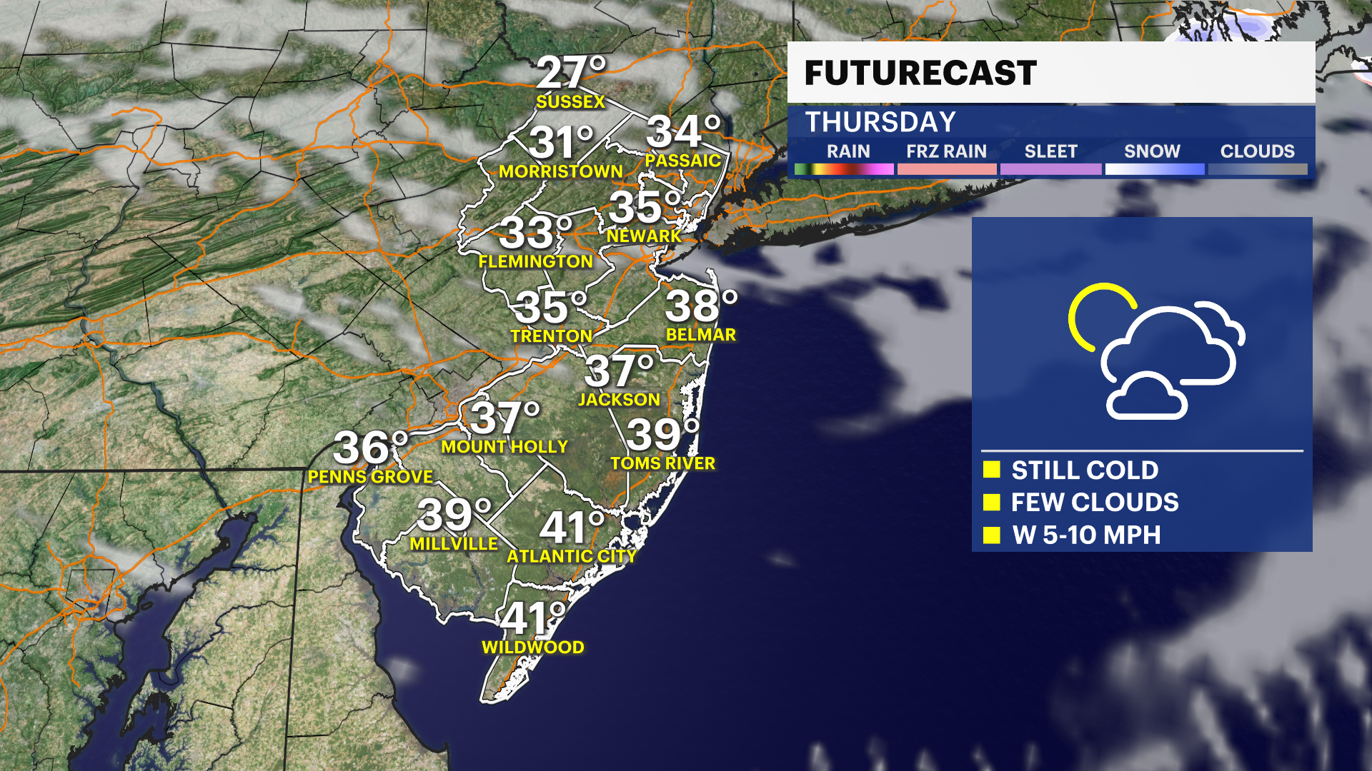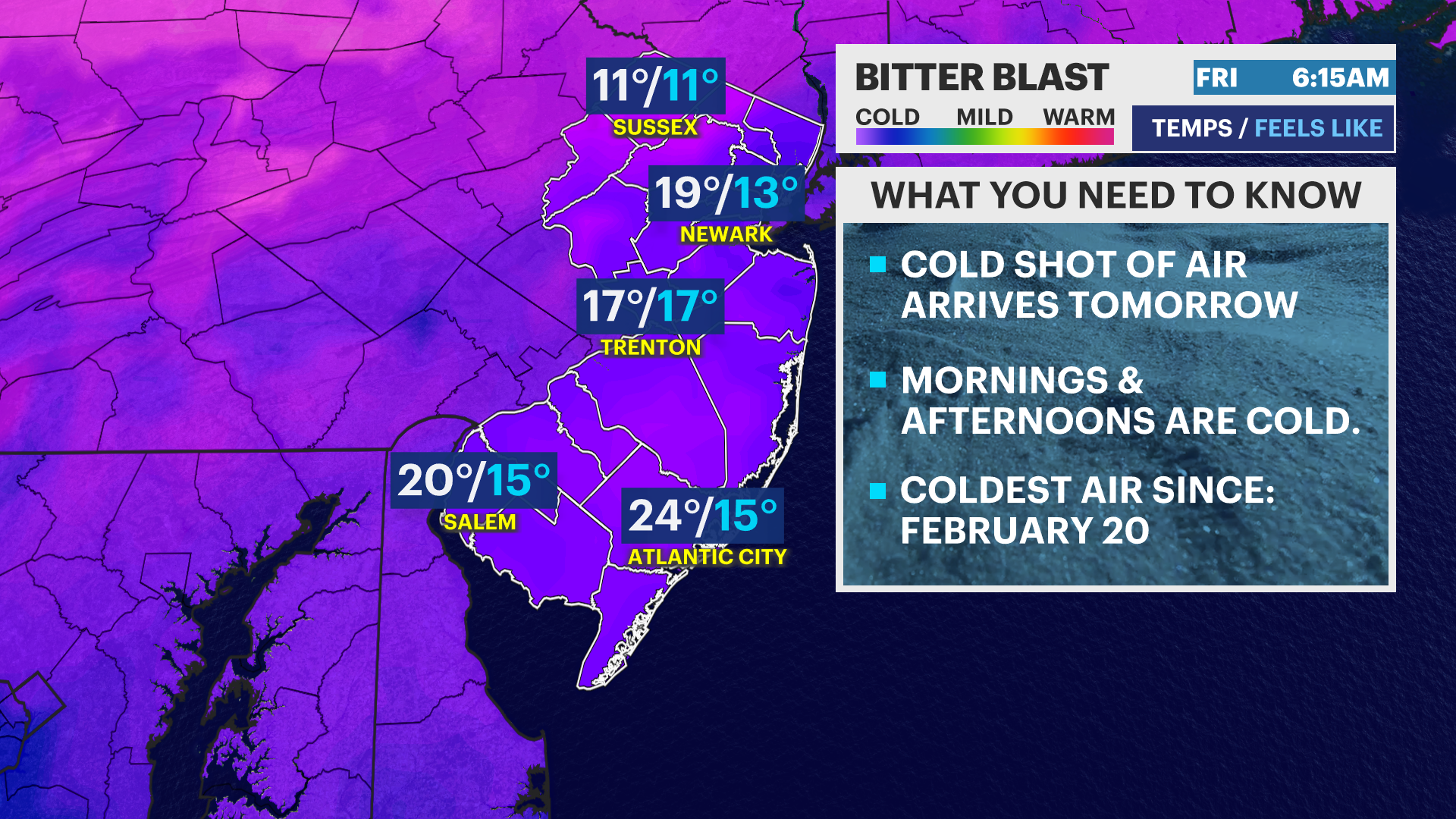 Even colder air arrives Friday morning with widespread temperatures in the teens across NJ with lows near 20 for the urban centers of the state.