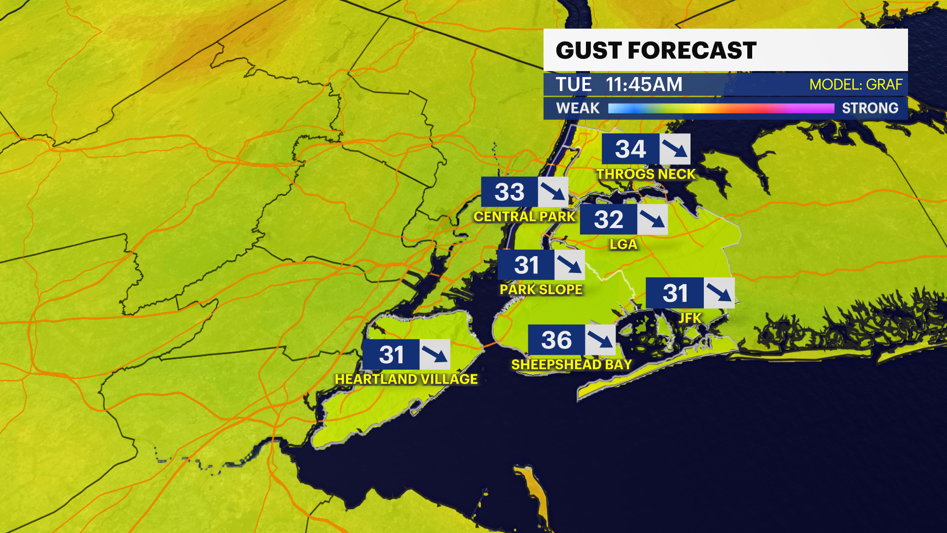 Tuesday: Turning drier but noticeably colder and windy. Skies become partly sunny with highs in the 30s.