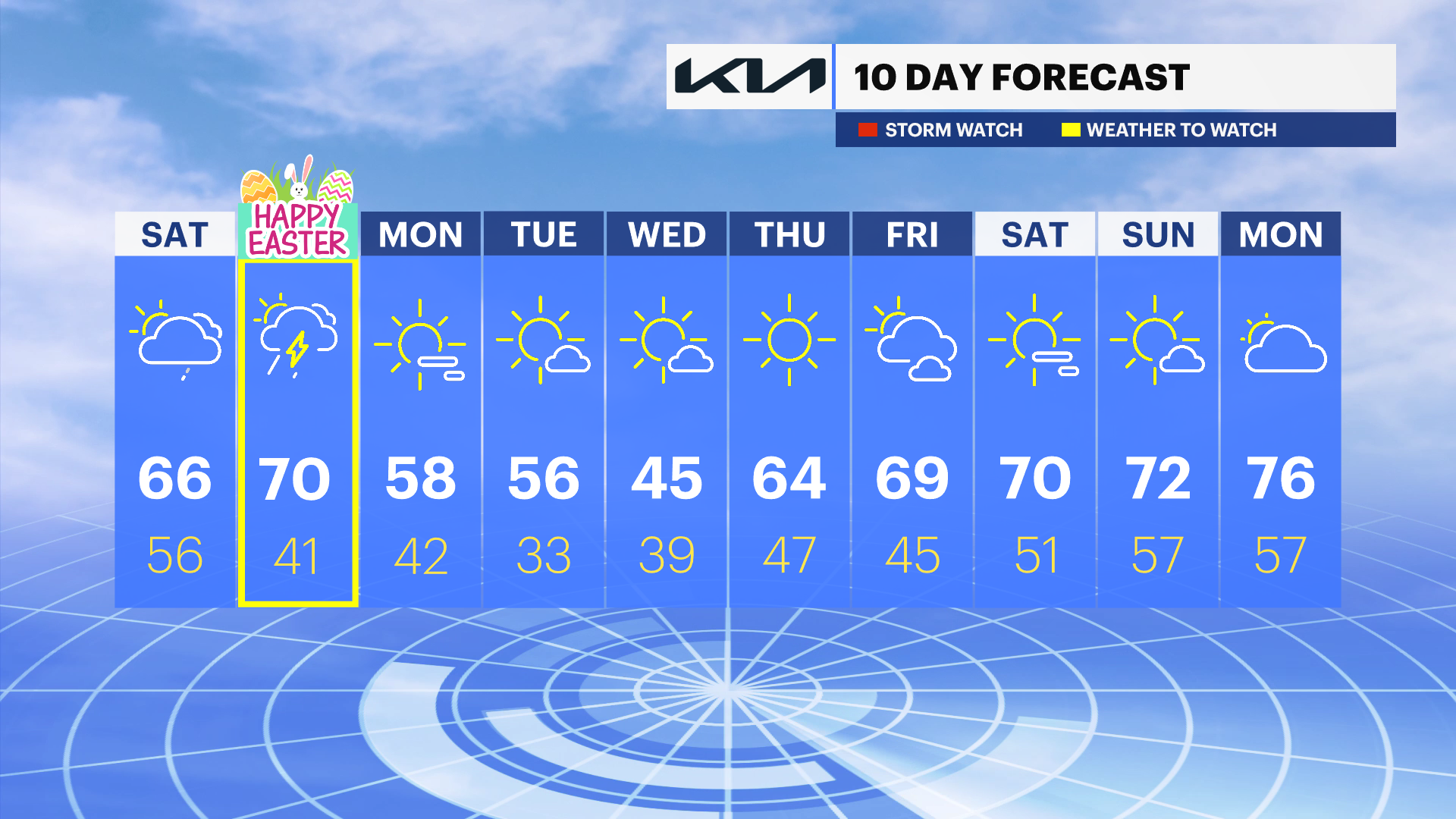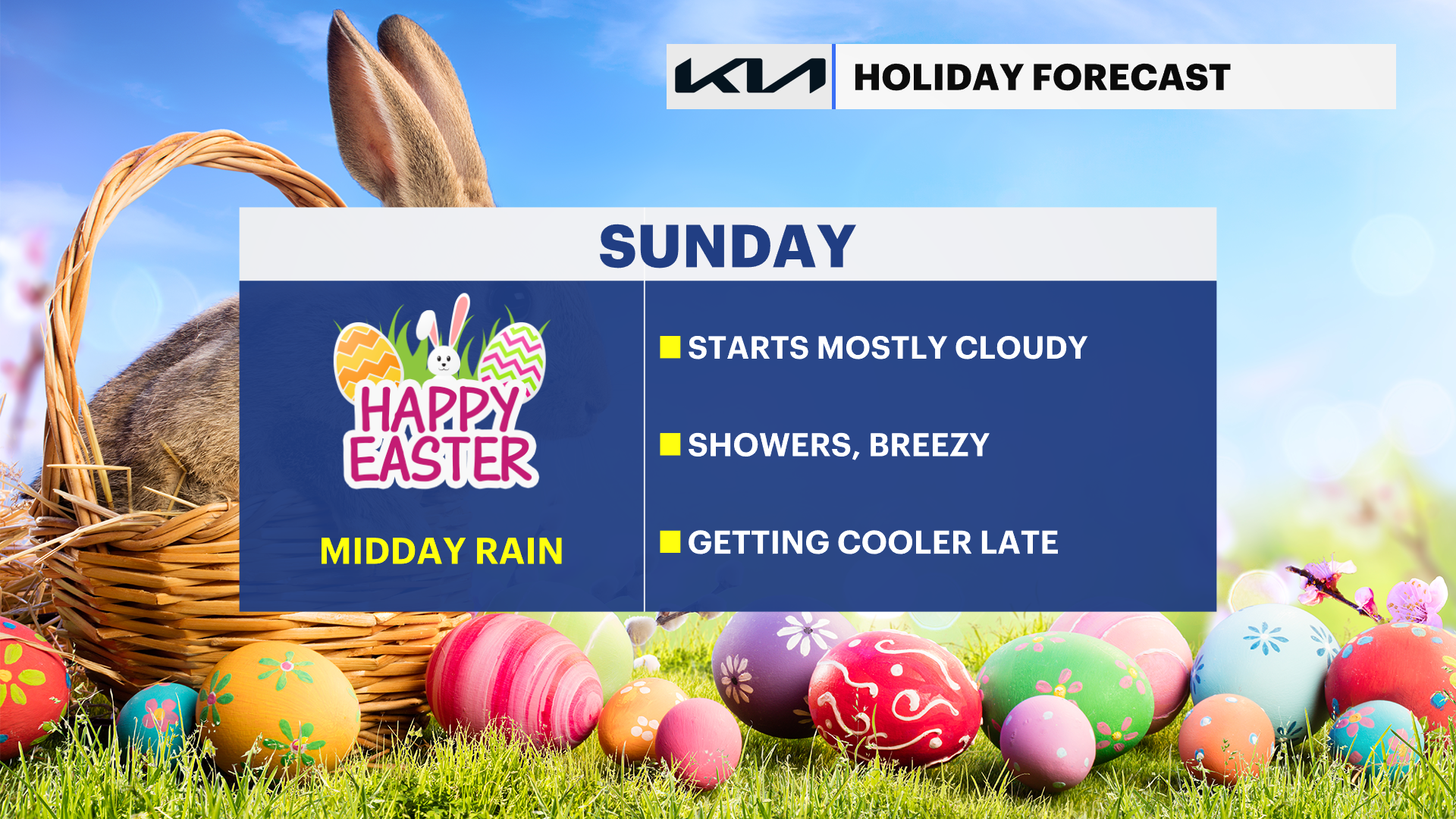 The better opportunity for that statewide soaking occurs on Sunday. A more defined weather system cruises into our neighborhoods late Sunday morning. Probably when Easter Masses are letting out. The rain will be consistent and at times plentiful.