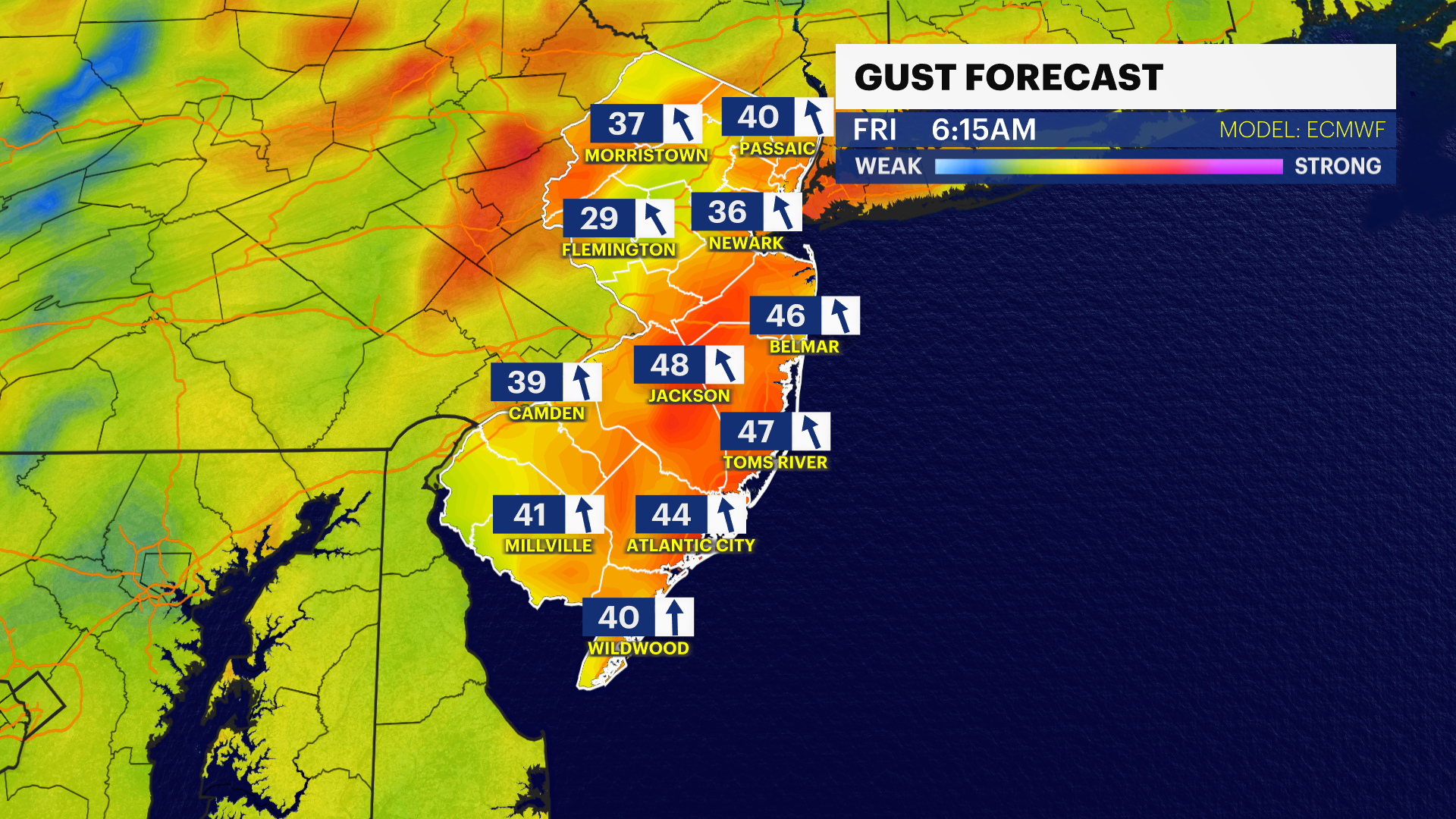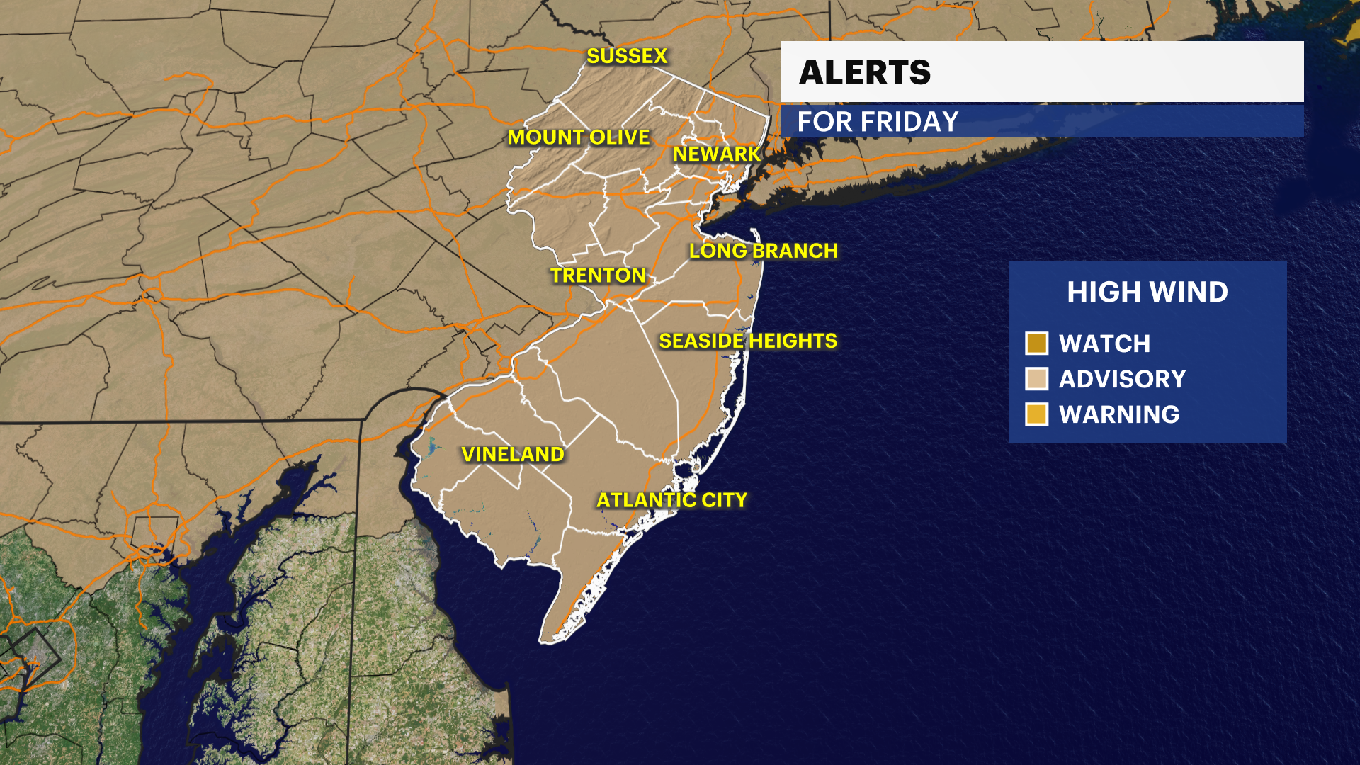 ALERTS: There is a WIND ADVISORY in effect for New Jersey through Friday for gusts up to 50mph.