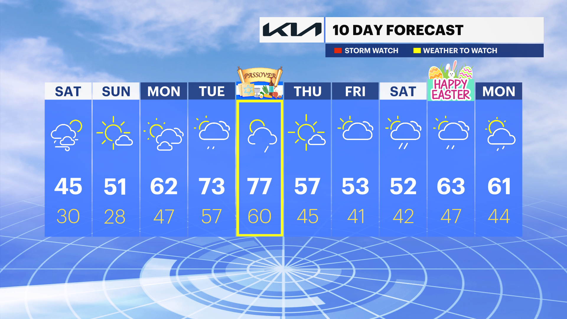 Nighttime lows will once again be cooler than average. Normal bedtime temperatures usually hover around 38 degrees. It will be closer to freezing once again on Sunday morning.