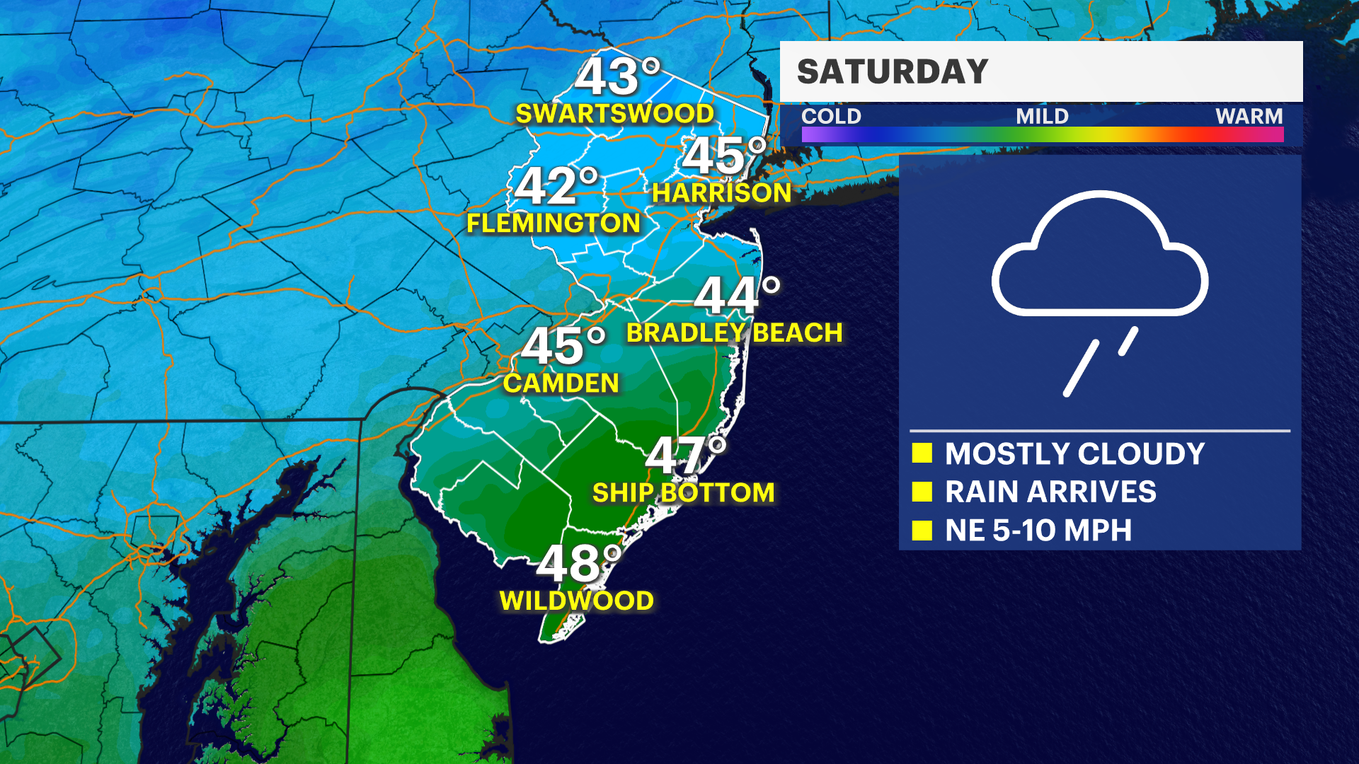 Saturday starts off mostly cloudy with rain arriving by noon. This rain will be moderate to heavy through 9 p.m. Roads will be wet and visibility will be reduced at times, so please take it slow.