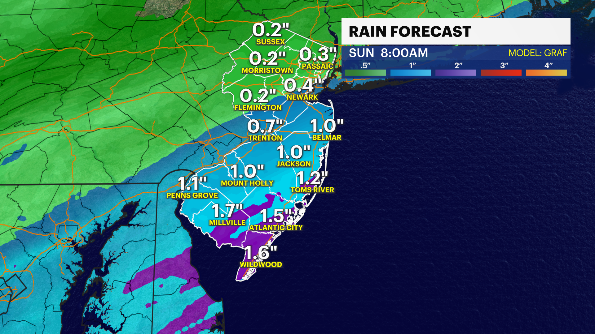Round one of rain is ongoing this evening and will gradually clear after 9 p.m. The next round of rain is a little more robust and will deliver up to 1 inch of rain by late Saturday night.