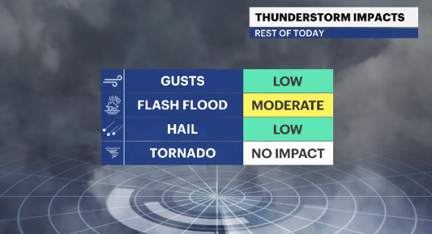 Isolated rainstorms are expected to continue through the night.