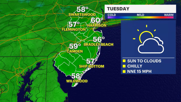 Early sunshine will fade behind building cloud coverage tomorrow. As a result, the temperatures will remain on the cooler side. The high is around 58 degrees (Normal is 63 degrees.)