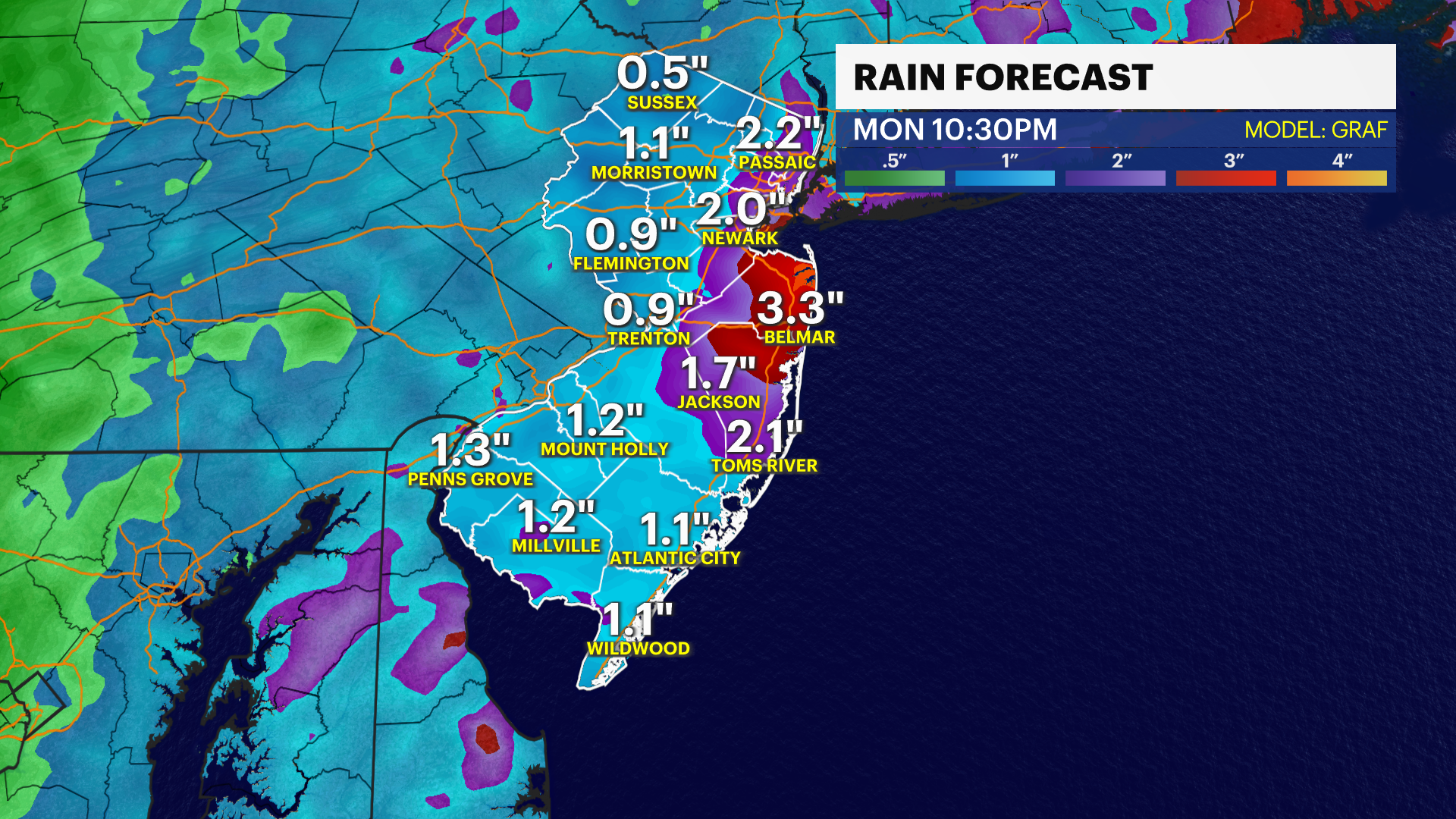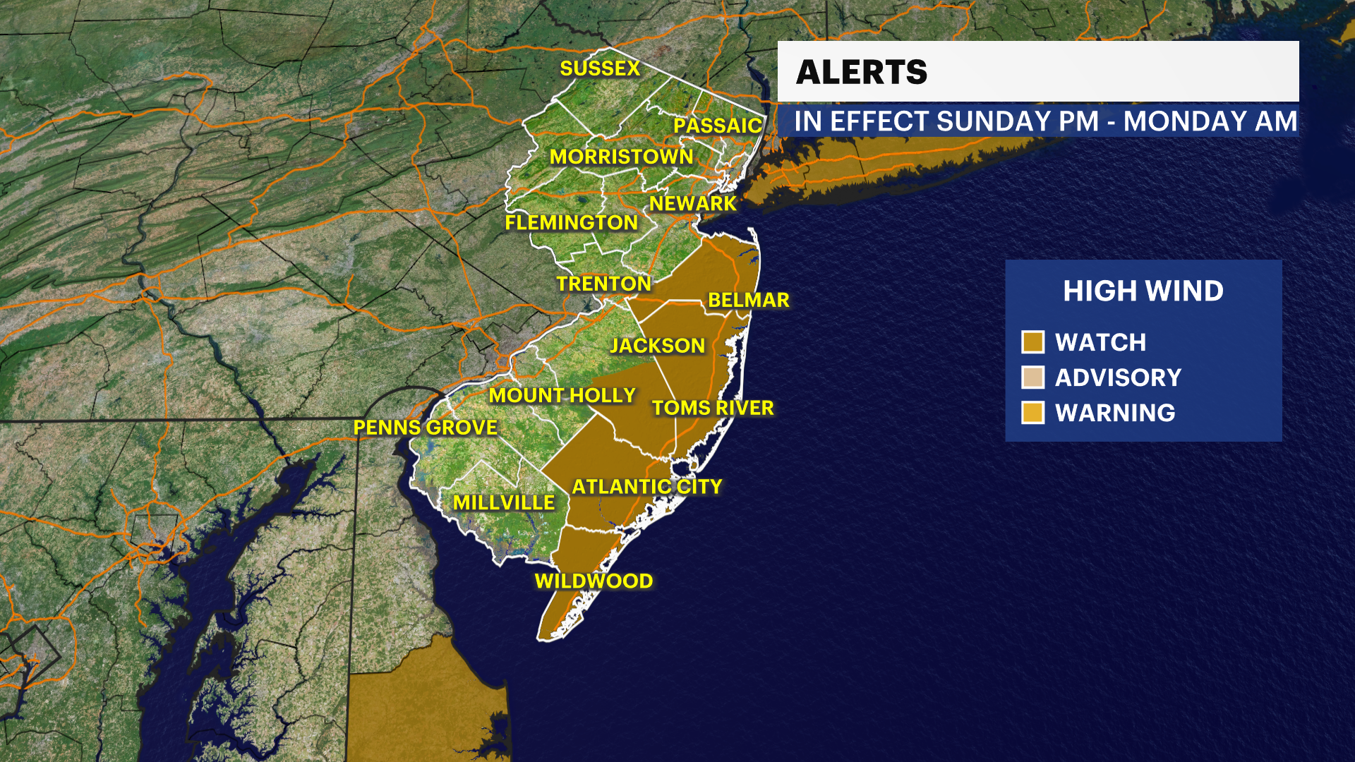 The NWS has issued a Coastal Flood Warning Sunday into Monday for the possibility of moderate to major flooding along the Jersey Shore. The timing is Sunday 2 p.m.-Monday 8 p.m.