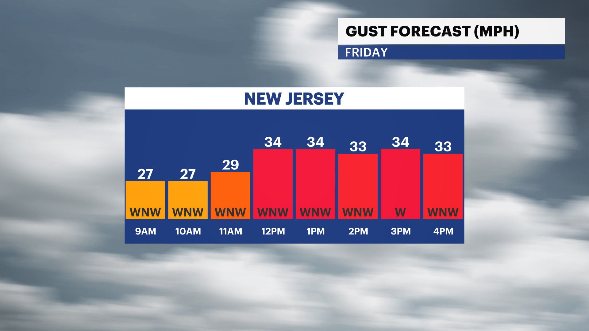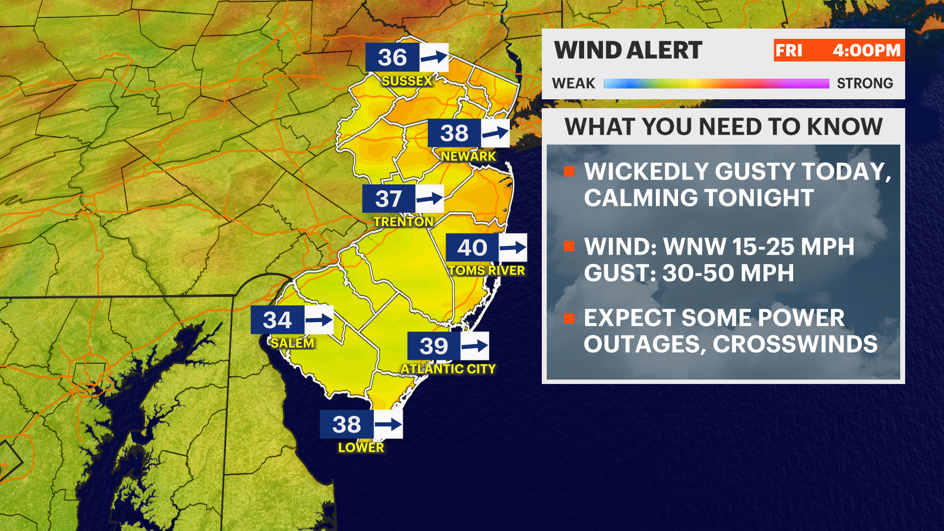 There is a WIND ADVISORY in effect for all of NJ today as gusts reach near 30-50 mph.