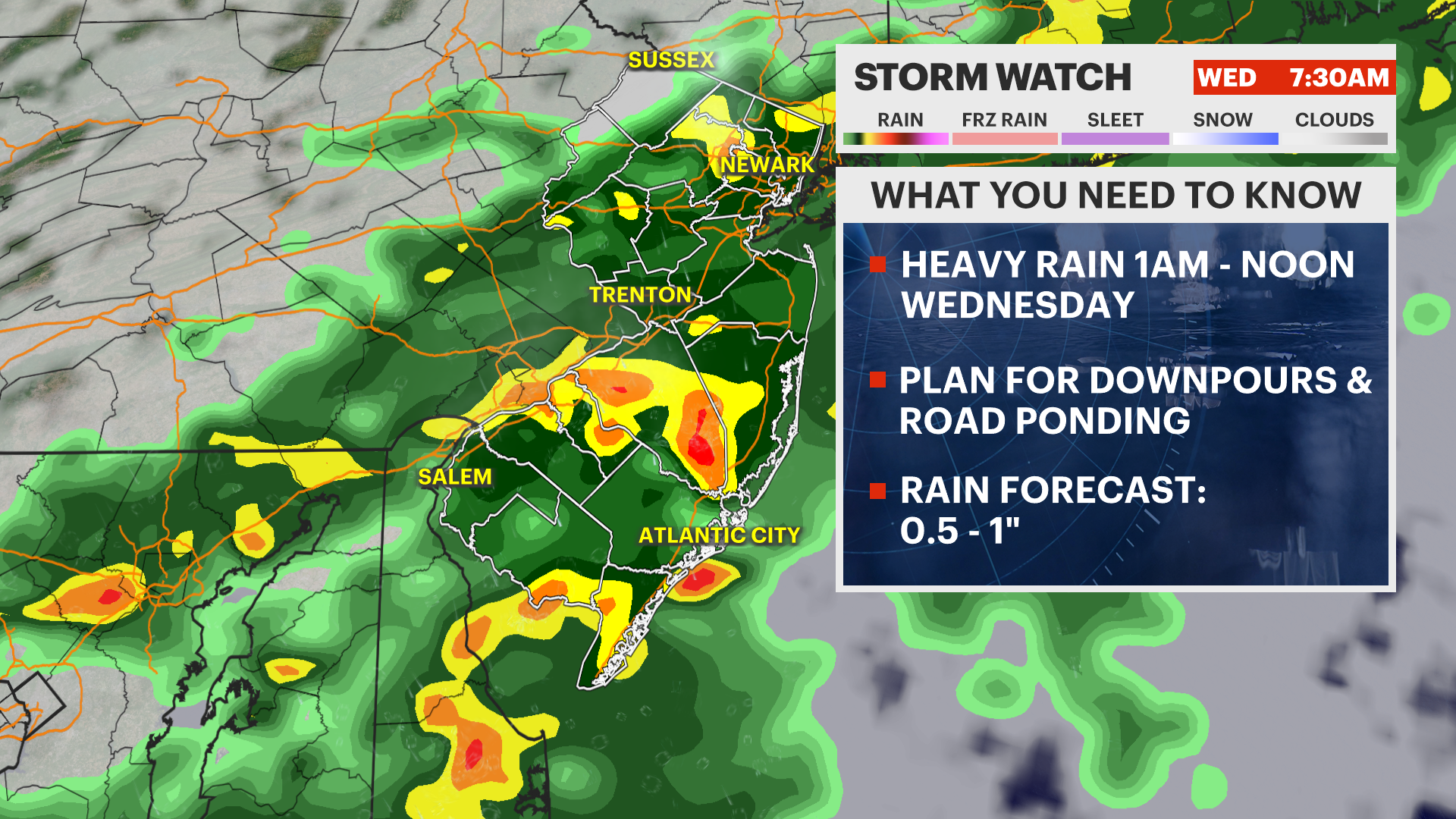 The clouds overcast by nightfall as the rain moves in shortly after midnight. Rain makes for a soggy and puddly morning commute on Wednesday. The umbrellas will certainly be needed. Rain wraps up near noon and the sky clears for the afternoon. It'll turn lightly breezy with gusts near 15 mph and cooler temperatures near 70 degrees.