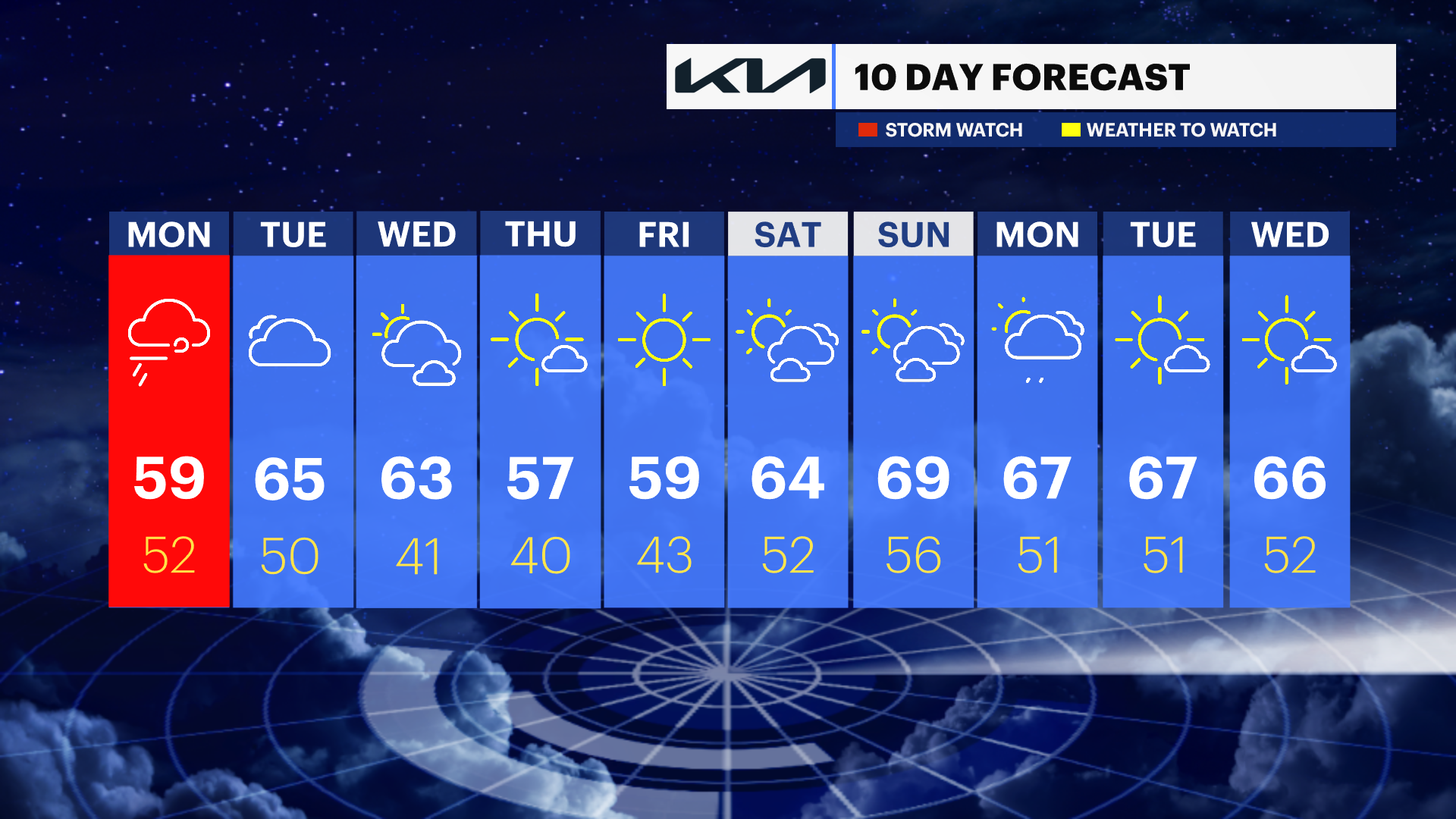 Wednesday: Improving conditions Wednesday through the end of the week. Mostly sunny with a high near 63.