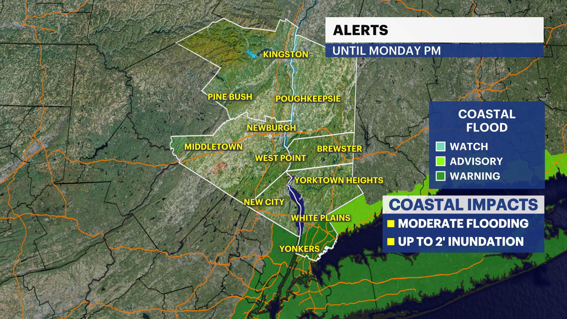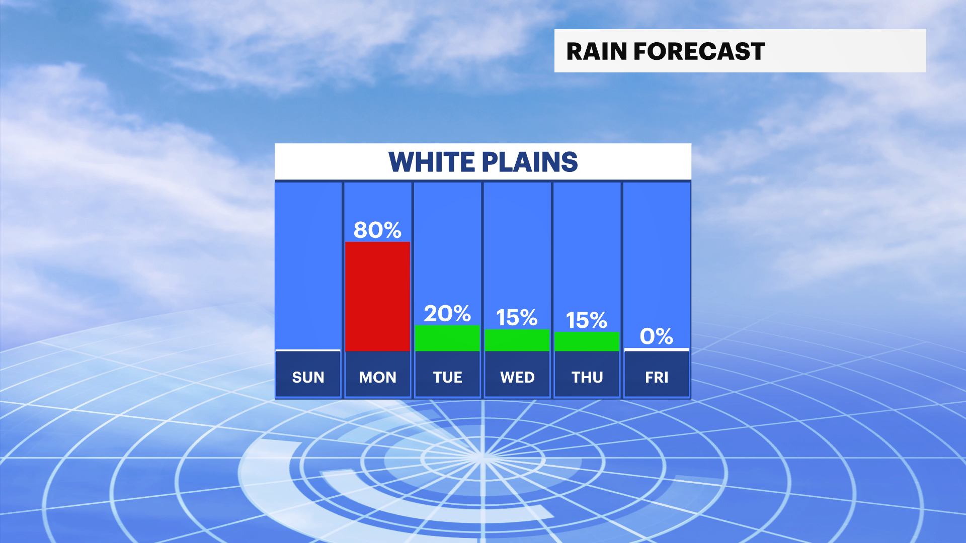 Monday: Rain sticks around for Columbus Day with a high near 59. Breezy northeast wind 15-25 mph, with gusts as high as 35 mph. Less than a tenth of an inch of rain is possible.