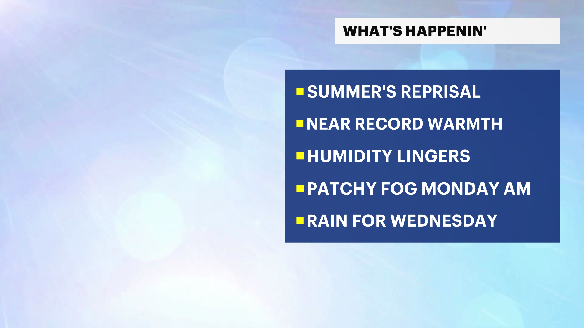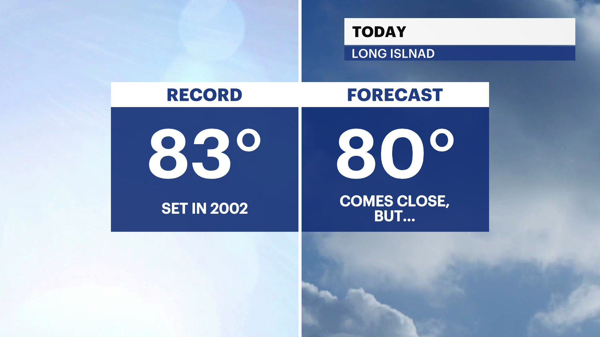 FORECAST: TODAY: Near record highs as temperatures push into the lower 80s. Sunny, warm, and slightly humid. Lows return to the mid-50s with patchy fog along the south shore overnight.