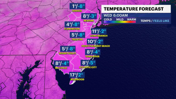 There will be no clemency from the cold this week. The arctic air will plunge unobstructed from the Hudson Bay through the Great Lakes and right into New Jersey's lap for the foreseeable future. This could be the longest stretch of sub-30-degree temperatures since 2018. Cold weather advisories extend through tomorrow.