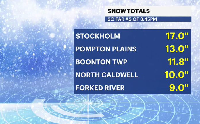 Neighborhoods have collected anywhere from 6 inches at the shore to well over a foot and counting in northern neighborhoods.