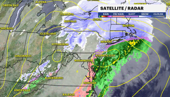 A wintry mix is now taking over. This will create a more slippery conditions to an already hazardous road conditions. The primary storm is now in the process of transferring its energy to a coastal storm. This will infuse more of that ocean air into the storm and sleet, and rain will be a bigger issue heading thru the overnight.