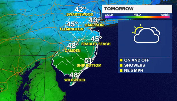 Nighttime lows should remain above the freezing point in most of our New Jersey communities. This will continue to allow the snow to melt. A few spots north and west could briefly dip to the freezing mark so patchy ice could develop.