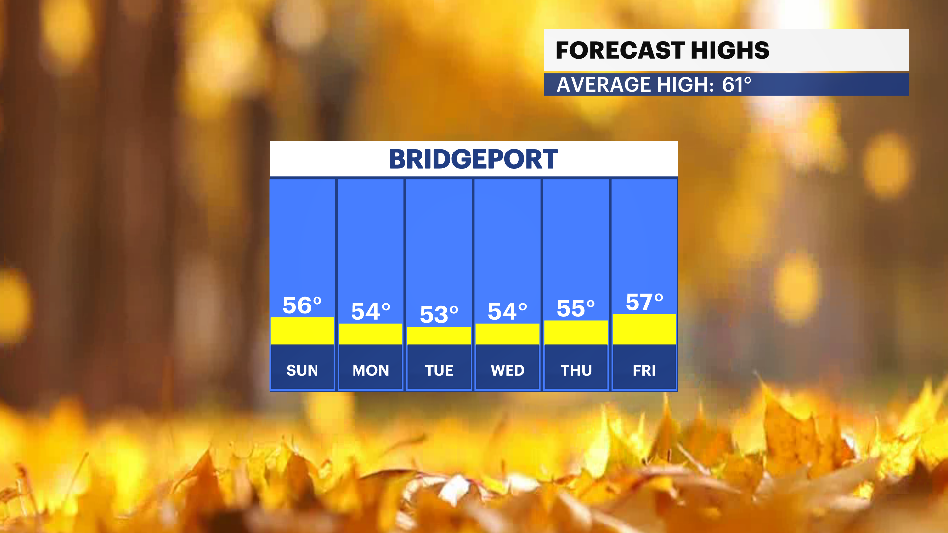 SUNDAY: Similar to Saturday. Highs in the upper 50s. Mix of sun and clouds.