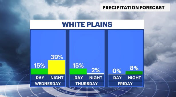 As the front is slowly passing overnight, the showers will start to change from rain to snow. Temperatures will start to go down during the same time as chilly air moves in to the region. The snow showers will shut off either before or in the beginning of Thursday morning rush. Accumulations are expected to be very low and mainly on grassy surfaces and some elevated surfaces, up to about a coating or so.