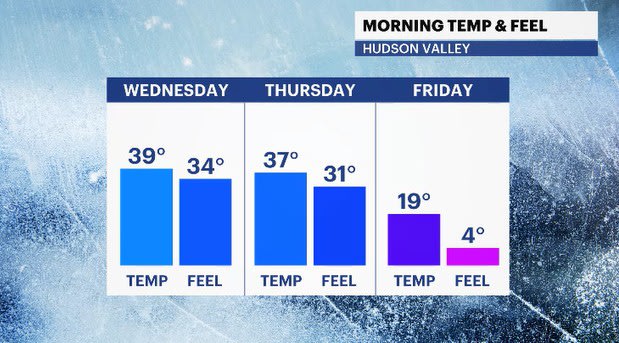 Temperatures will continue to go down through the day as chilly air moves in and does so at a quick pace. Gusty winds will move in through the day on Thursday, making the temperatures feel chilly. Friday sees out temps feeling very cold, especially in the morning hours. Some spots may feel into the single digits or near zero.