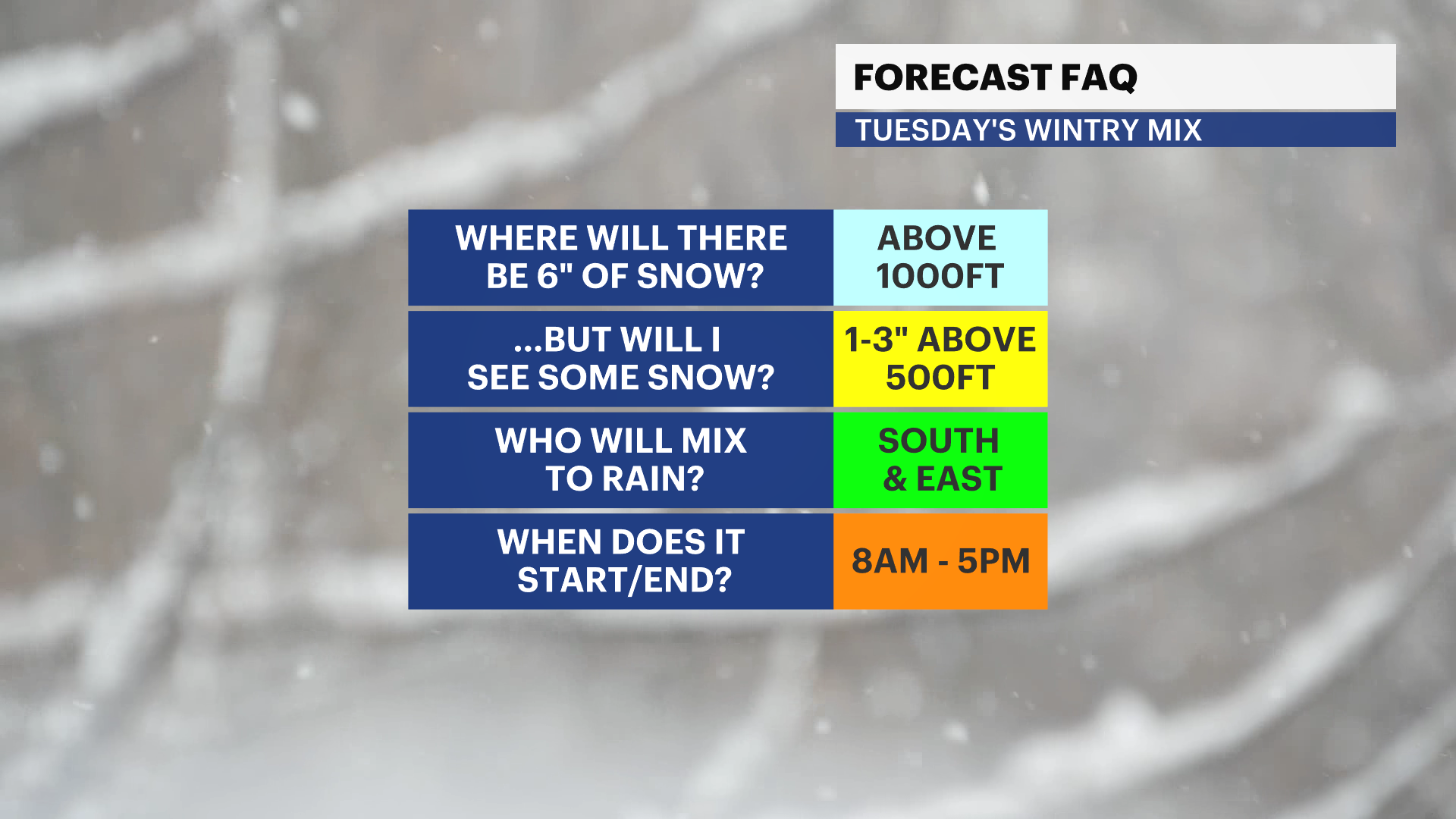 Elsewhere, elevations over 500 ft should plan for 1-3" of snow, which is plowable and can cause some travel delays.