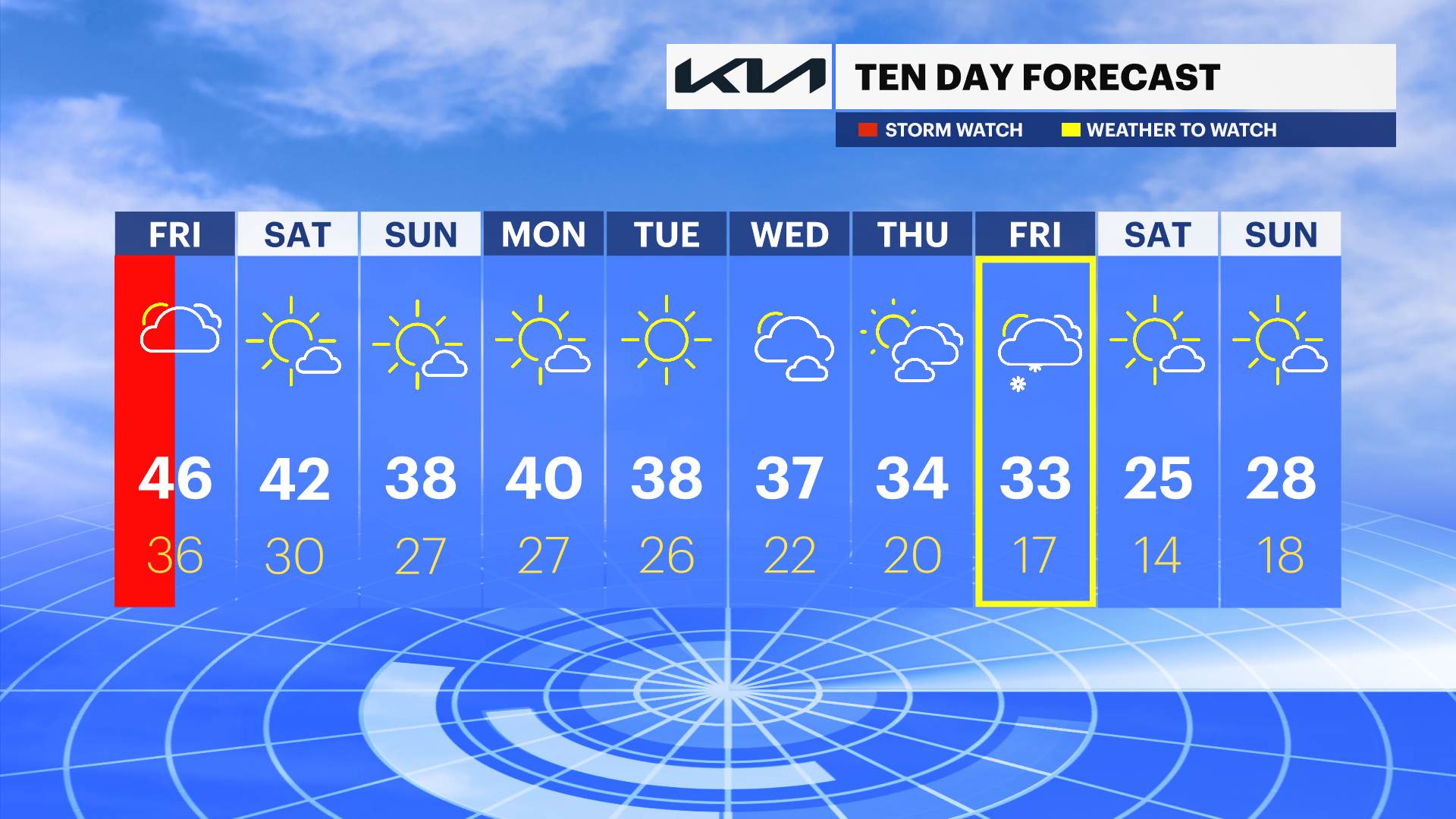 COMING UP: The upcoming week will start off sunny, but temperatures are expected to be in the upper-30s. More rain and snow are possible for the end of the week.