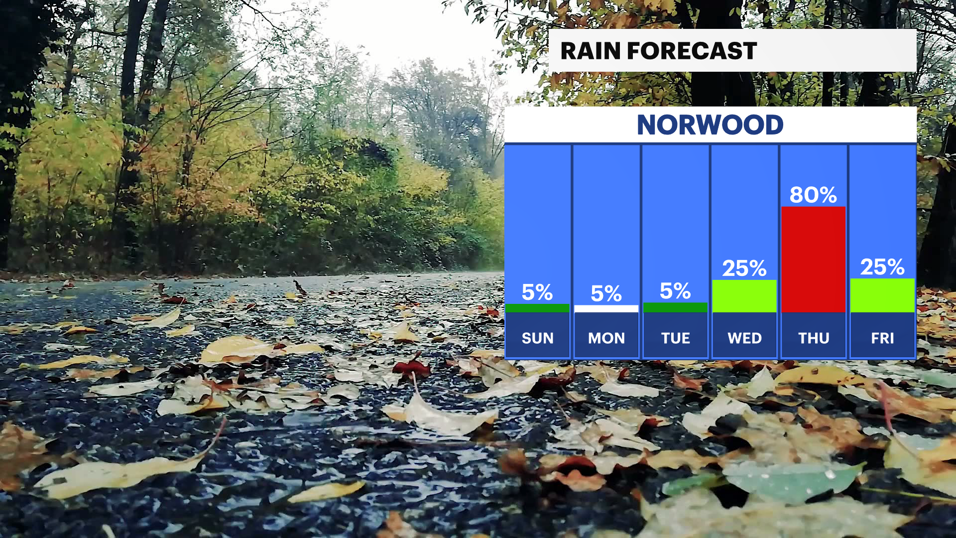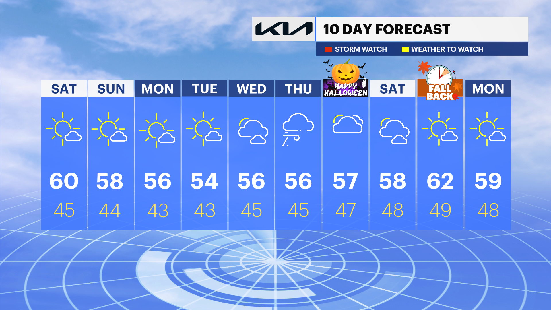 If the winter gear is not out yet, you're certainly going to want to get the coats, sweaters and scarves out now! Old man winter is trying to sneak his way into the forecast a bit earlier than normal. Temperatures are forecast to be a few degrees cooler than your typical late October. Afternoon highs this Saturday are forecast to be in the upper 50s. A mix of sun and clouds is expected so no rain cancellations for any outdoor family fun or sports games. The weekend is forecast to finish similarly with Sunday's weather similar. The day is expected to start with some patchy fog and temperatures in the 40s with afternoon highs again around the mid 50s. The workweek is starting off very cold with highs barely getting out of the mid 50s. High pressure exits the region Monday as an area of low-pressure travels across the Southeast and exits the mid-Atlantic around the midweek. This low will increase rain chances starting Tuesday and continuing through the end of the week.