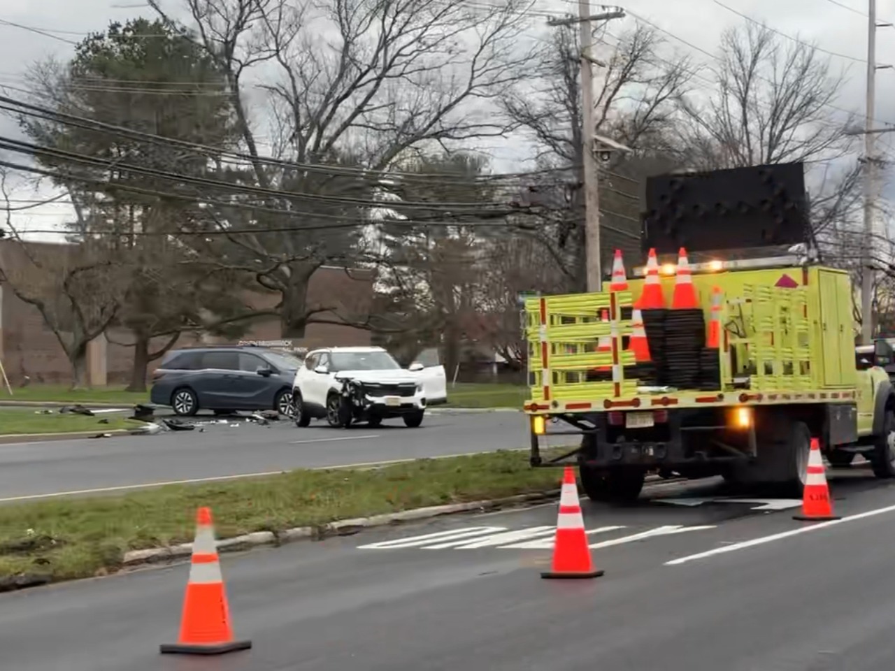 The driver of the truck was transported to Shore Medical Center for minor injuries.