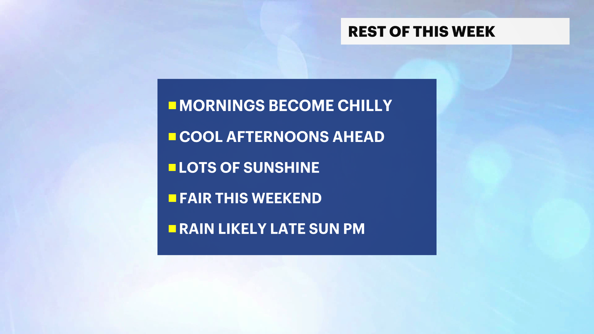 The sun shines bright for the rest of the week with highs in the lower 60s.