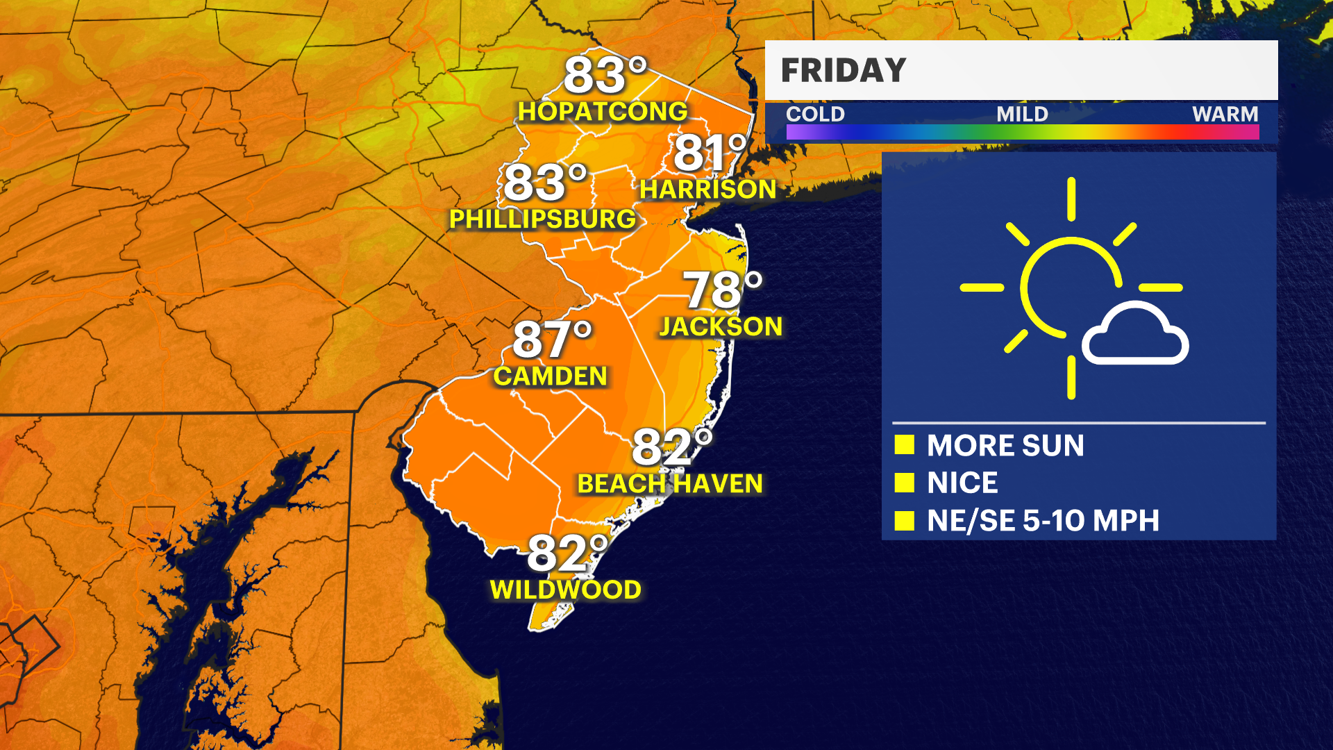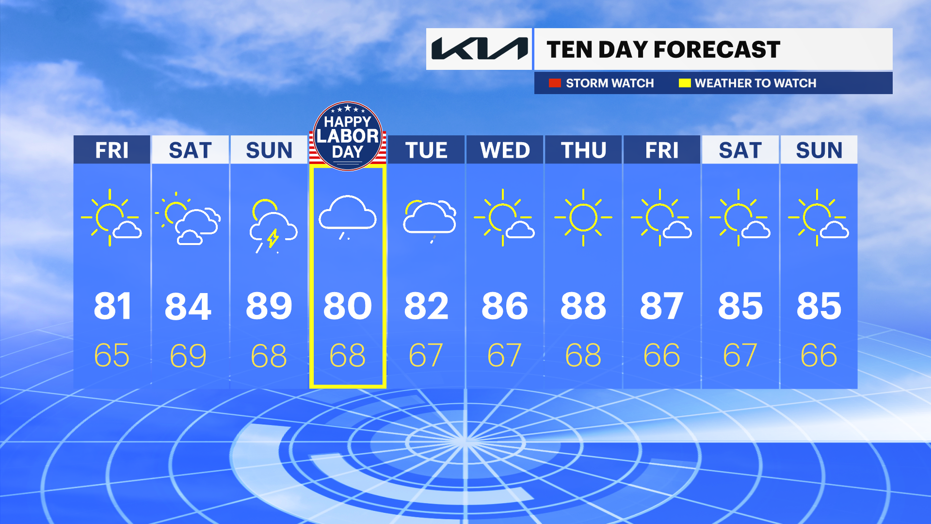 is expected to see a mix of sun and clouds with highs around 84. Sunday sees an