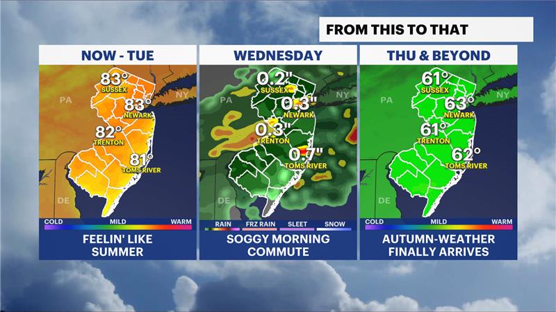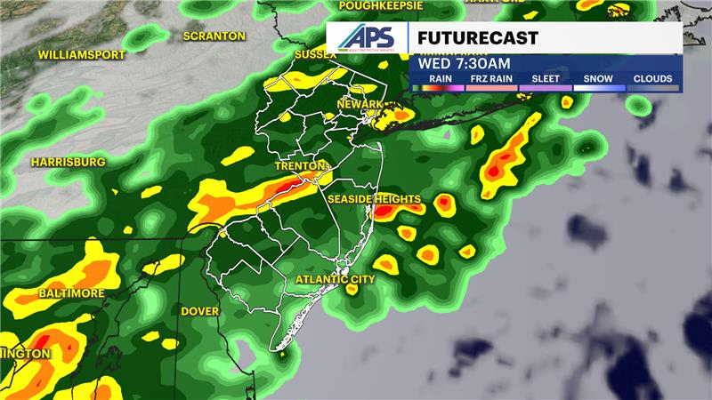 Things change on Wednesday morning with a passing weather front that will deliver a round of showers to the state for the morning commute. This will create wet conditions, slippery roads, and road ponding. The rain wraps up near noon, and cooler and breezy air replaces the warm and humid air.