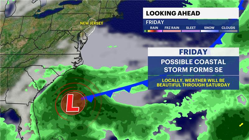 Saturday looks fair for now. The same front may produce a coastal storm over the SE coast early this weekend. It has potential to move northward toward NJ for Sunday/Monday, where it would produce lots of rain and wind for our area. This would be a moderate impact storm if it does happen. As of right now, it's new, and it's just a chance.