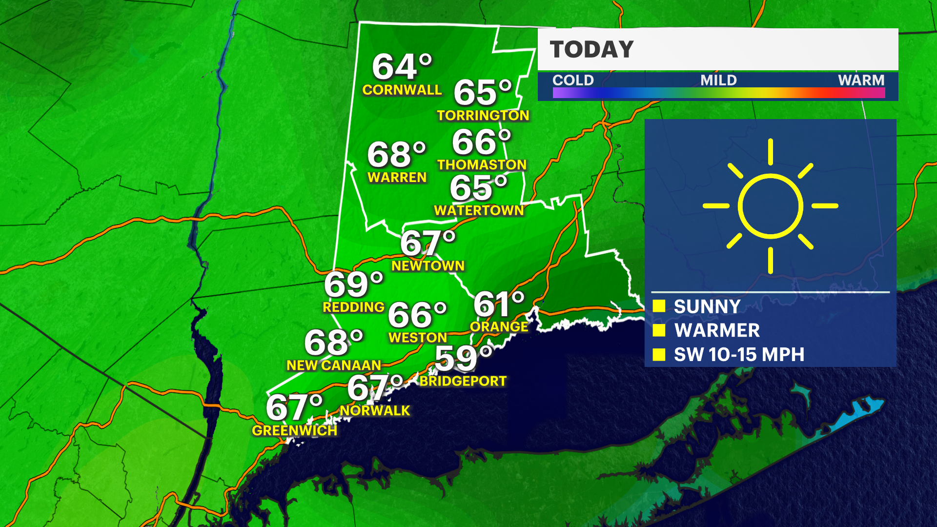 Today and Tuesday will feel downright balmy with a mix of sun and clouds pushing highs into the 60s to near 70 away from the Sound.
