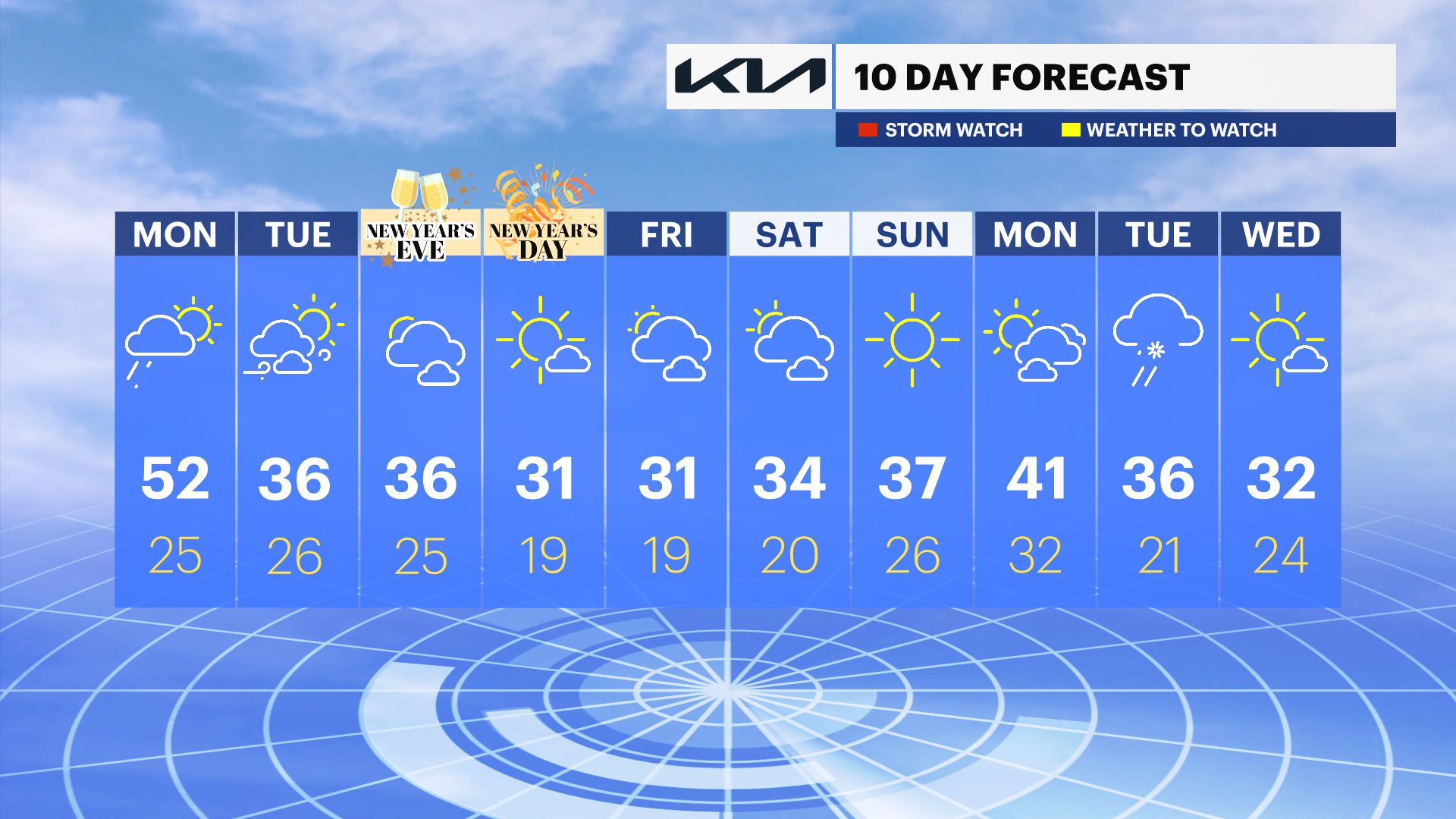 Canadian air will settle upon the region the next few days with readings below average. Wind chills during the morning will be in the teens. A few snow showers are possible as we head toward midnight New Year's Eve.