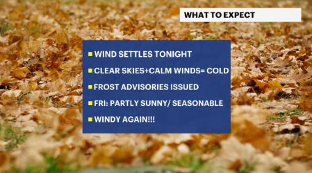Skies will be clear, the winds will let up and this meteorological setup is great for colder weather. Despite the chilly start, it looks like with some early sunshine, the temperatures will slowly rise through the day tomorrow to their seasonable levels of the upper 50s.