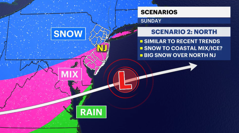 What about the weekend? It is looking more and more likely that New Jersey will be in the middle of a big wintry mess. This weather system and what it could do to New Jersey is still evolving. The forecast will change with it. But this is what we know right now. The model guidance has been trending north. This means more snow in northern areas and less snow in southern and coastal neighborhoods. The issue with this scenario would be a heavier and wetter snow that transitions over to sleet and then over to freezing rain (i.e ice). Any kind of ice is a worst-case scenario. And if we do see ice develop, it will be around for quite some time. There is more punishing cold that will follow behind this storm next week.