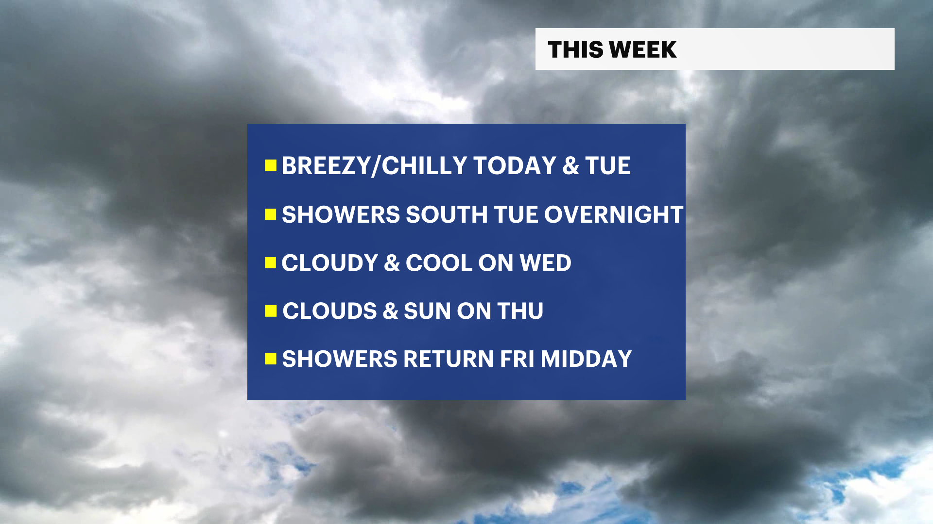 Thursday's sky opens up slightly with some breaks of sun.