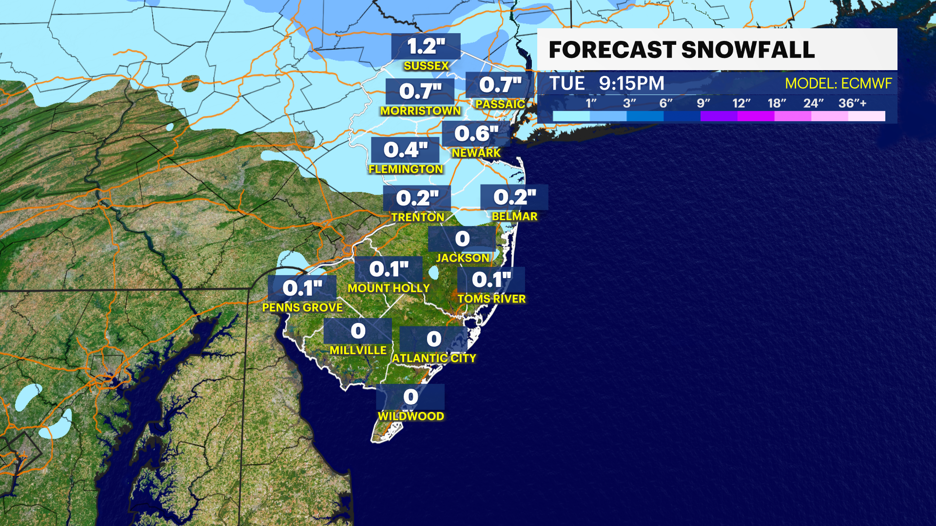 A dry and milder afternoon on the way for your Sunday with sunshine and highs in the middle 40s for most. A gusty wind will develop up to 30 mph at times, perhaps making it feel a little bit cooler. Tuesday brings the chance of another storm system with rain and snow possible; roads may be slushy but mainly wet. Up to 1-2 inches of wet snow possible, especially north of I-80. Leave yourself some extra time if hitting the roads on Tuesday morning. Brief clearing Wednesday before wet weather returns around Christmas and late week. Temperatures stay seasonable overall, with a few mild bumps mixed in. A white Christmas looks unlikely but not impossible, especially for higher elevations where leftover snow on the ground may stick around. Stay tuned to News12 NJ for updates!
