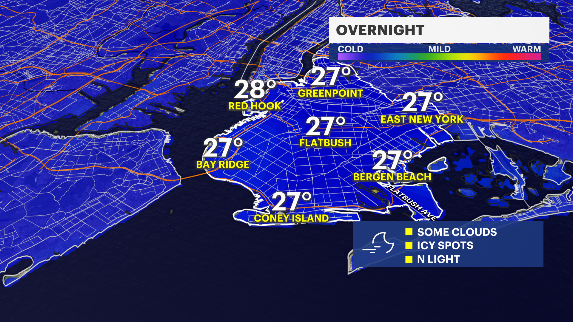 The News 12 Storm Watch Team is keeping an eye on a stronger storm system for early next week. Guidance as of Thursday evening has this still wanting to stay more to the south-- but there is still the potential for the borough to see snow, ice, and rain. Friday and Saturday will feel quite nice, with temperatures nearing 50 degrees on Saturday. Monday's forecast temperatures are the coldest they will be over the next week. Warmer temperatures (in the 40s and potentially near 50) will quickly follow.